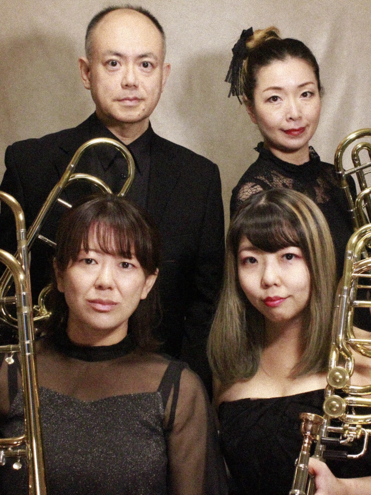 私たちはトロンボーン四重奏という編成で、クラシック音楽からポピュラー音楽まで幅広いジャンルの曲を演奏しています。